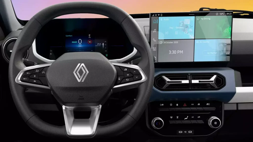 En el interior, el nuevo Renault Kwid E-Tech 100% eléctrico ofrece un nuevo diseño que combina sofisticación, comodidad y tecnología.